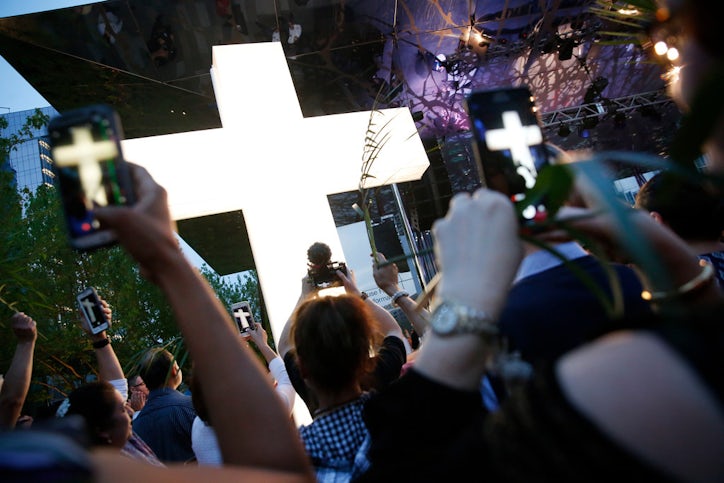 The Dallas Morning Herald reported there were about 3,000 church members and visitors who joined Robert Jeffress, pastor of the 20,000 member First Baptist Church, on a Sunday evening march from downtown Dallas to Klyde Warren Park, "Where they raised a large illuminated cross."