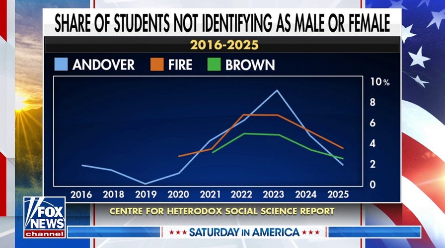 Last week, Fox News Digital reported on data shared by Eric Kaufman, a professor of politics at the University of Buckingham, showing that the share of college students identifying as anything other than male or female has been cut in half in just two years.